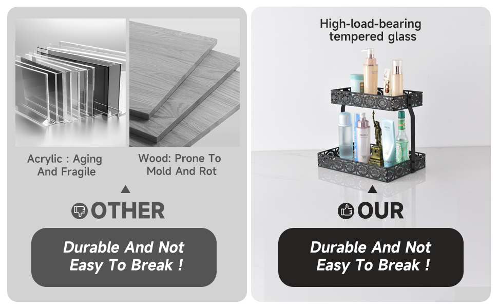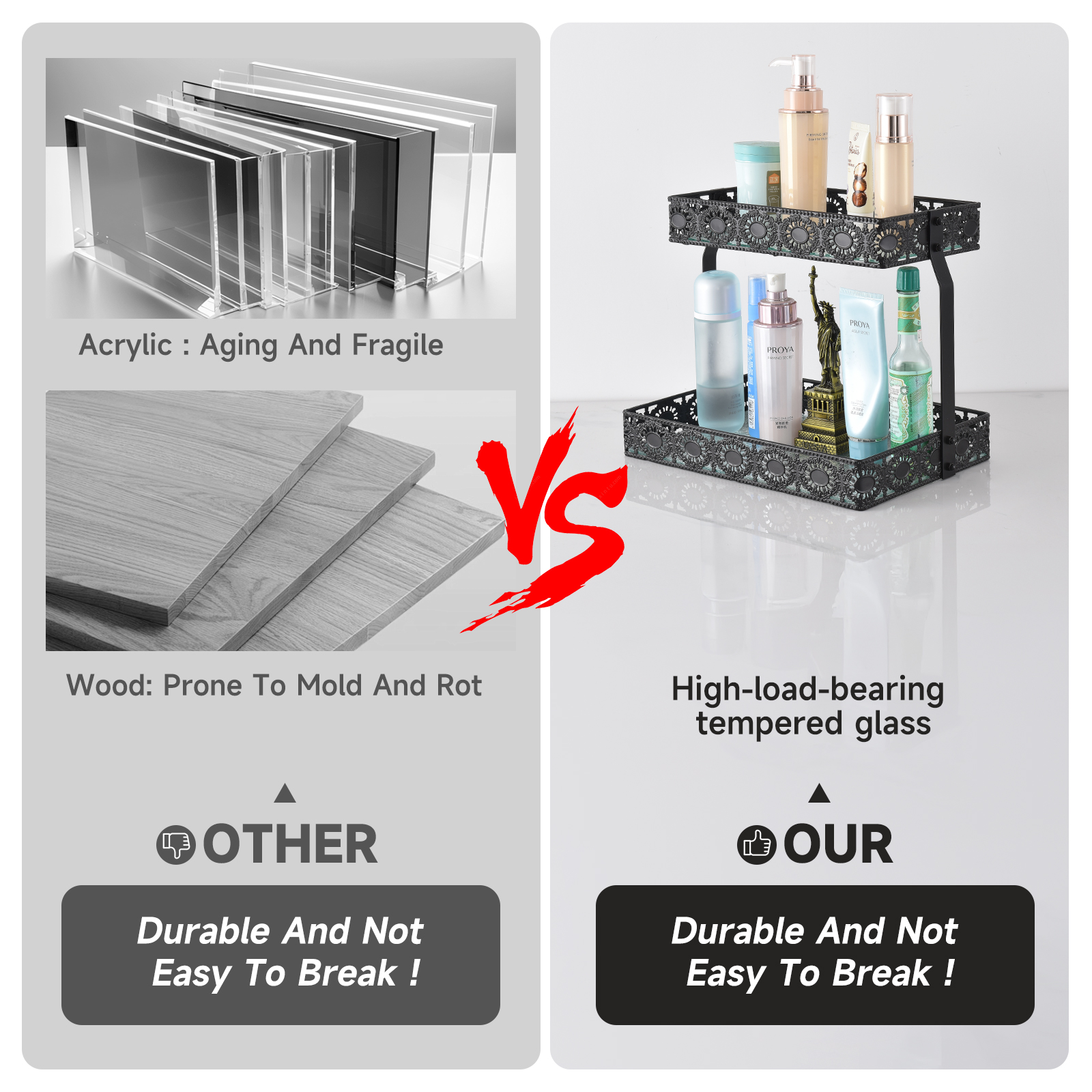 • Multi Purpose: the 2-tier wood countertop organizer can not only be applied in the bathroom, but also as a dressing table, kitchen spice, coffee table storage; The elegant wooden tray can be applied as a decoration on the countertop, adding a stylish atmosphere to your home, and it is also an ideal gift for friends