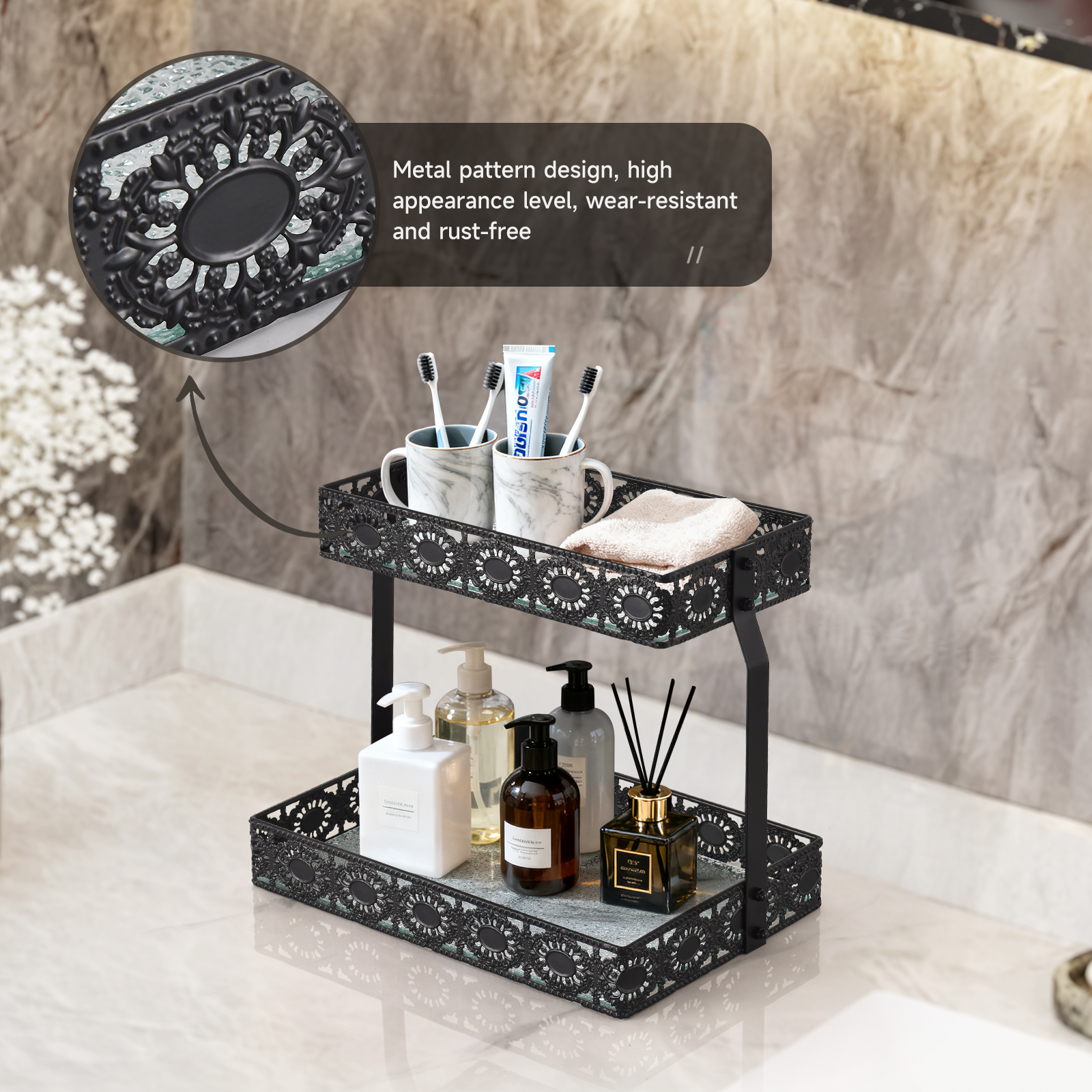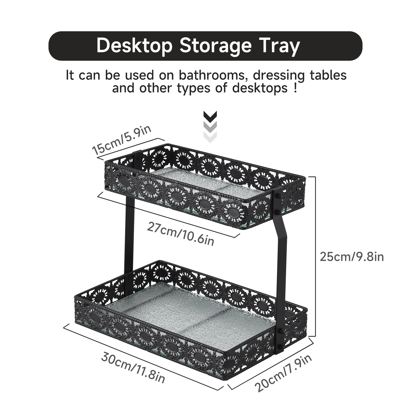 • Suitable Size: the tray size of this 2-tier bathroom counter shelf is 13.39 x 7.09 inches, the total height of the shelf is 12.99 inches, and the lower tray can hold items up to 8.74 inches high; The double-layer open design is easy to access and clean, making the most of your countertop space