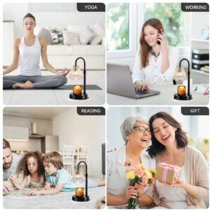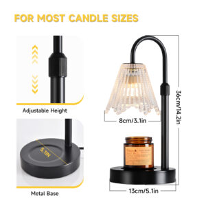 Candle Warmer Lamp, Black Metal, Crystal Glass Shade, Electric Candle Melter with Adjustable Gooseneck, Smoke-Free Safe Design for Home