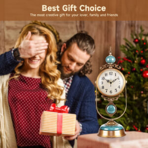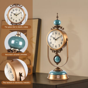 Vintage Metal Table Clock, Silent Operation, Gold and Brown, Battery Powered Desk Clock with Antique Design, 12 Inches